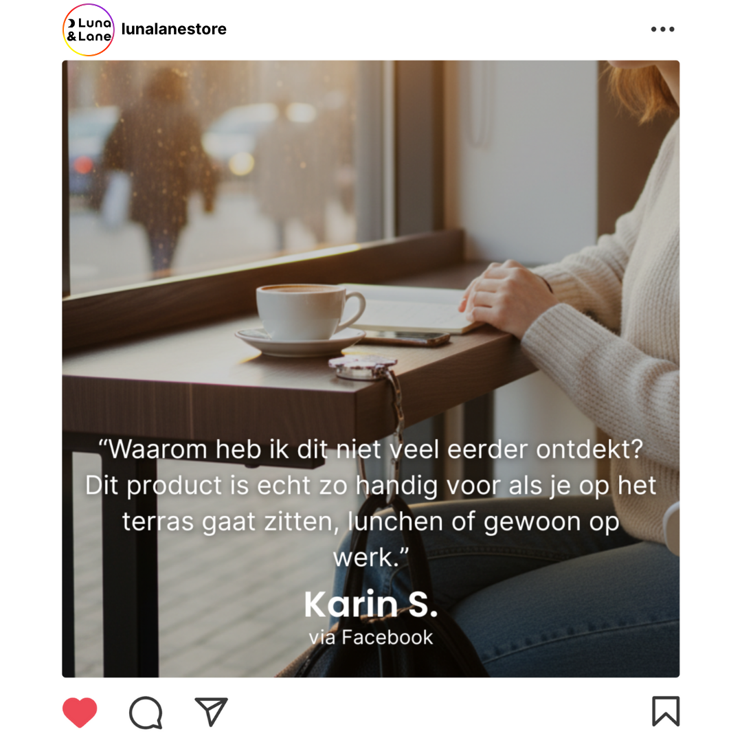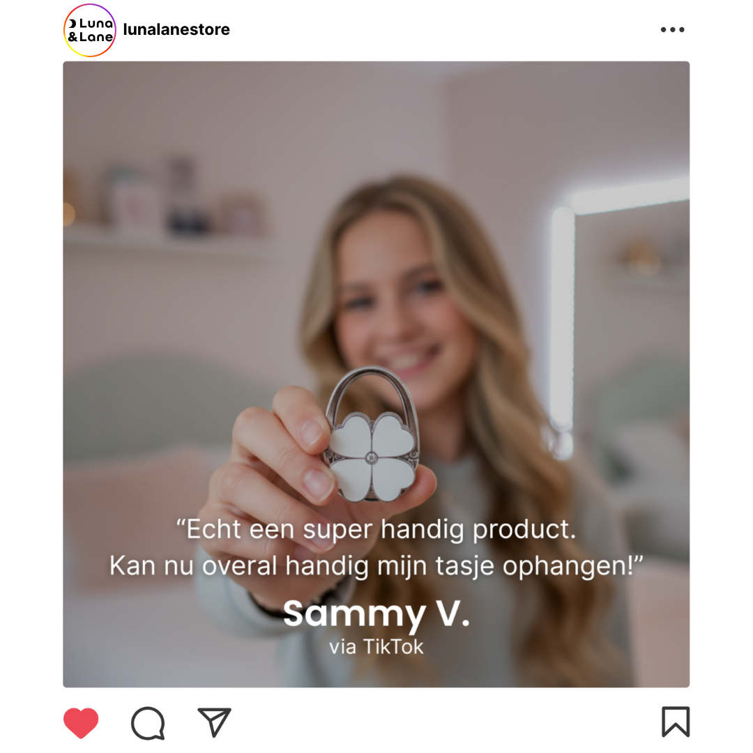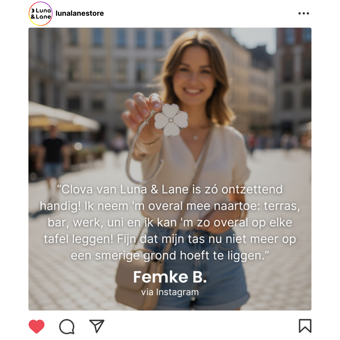 Deze stijlvolle klaver-haak geeft je tas een veilige en comfortabele plek, waar je ook bent. Van terras tot werkplek.